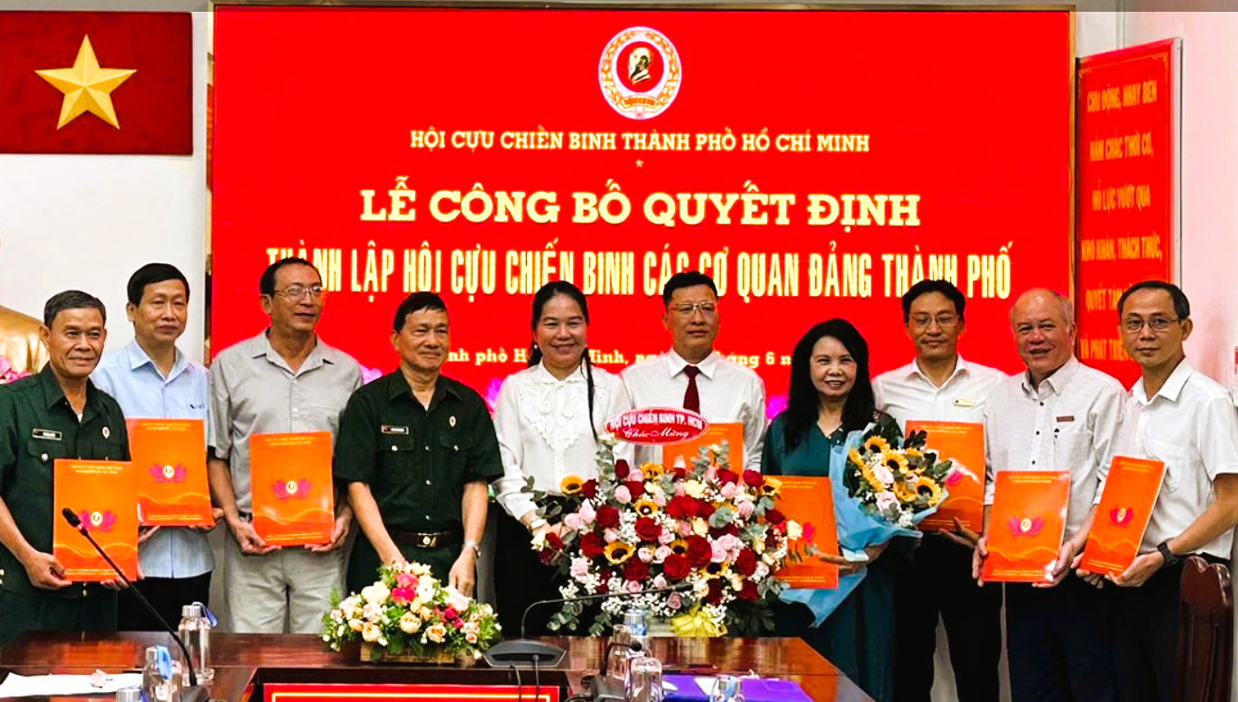 Hội Cựu chiến binh các cơ quan Đảng TPHCM được thành lập vào tháng 6-2025 theo Quyết định của Hội Cựu chiến binh TPHCM. Hội hiện có 13 chi hội, với 245 hội viên là cán bộ, công chức, người lao động công tác tại các ban Đảng, ban, ngành, hội, đoàn thể trực thuộc Thành ủy TPHCM. Dù mới thành lập, hội đã sớm kiện toàn tổ chức, ban hành quy chế làm việc, duy trì nền nếp sinh hoạt và nhanh chóng phát động phong trào thi đua “Cựu chiến binh gương mẫu”, gắn với học tập và làm theo tư tưởng, đạo đức, phong cách Hồ Chí Minh.