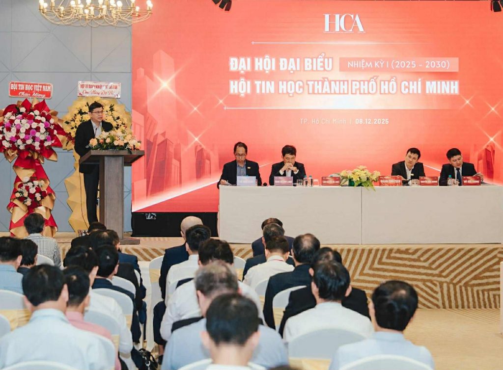 Ngày 08 tháng 12 năm 2025 – Hội Tin học TP.HCM (HCA) long trọng tổ chức Đại hội Đại biểu nhiệm kỳ I (2025 – 2030). Sự kiện đánh dấu bước chuyển mình chiến lược của HCA sau hợp nhất với Hội Tin học Bình Dương, chính thức mở rộng quy mô hoạt động và tăng cường kết nối trong vùng kinh tế trọng điểm phía Nam.