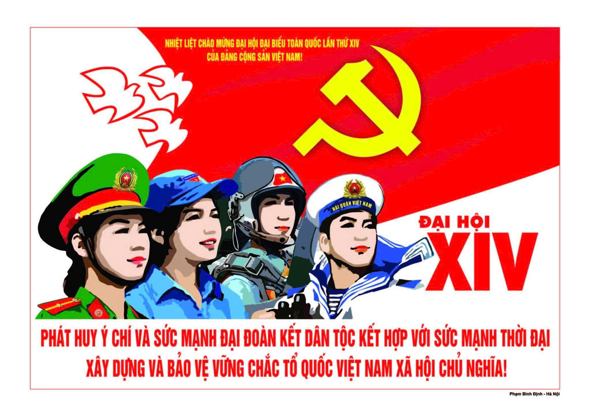 Dưới đây là tác phẩm tranh trong số 17 mẫu tranh cổ động đã được Bộ Văn hoá, Thể thao và Du lịch phê duyệt phù hợp để sử dụng tuyên truyền chào mừng Đại hội đại biểu toàn quốc lần thứ XIV.