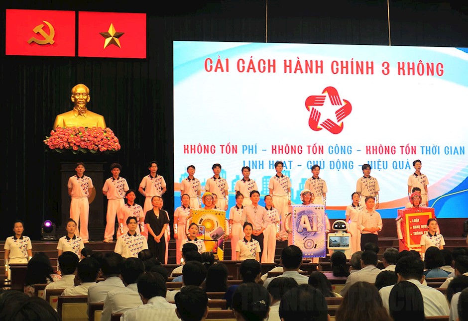 Tiết mục tiểu phẩm “Cải cách hành chính 3 không” tại hội nghị